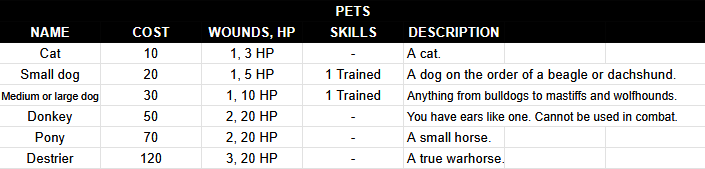 Pets provide advantage on Rest saves. Whenever they take damage, its master accumulates 1 stress. If the pet dies, they must make a panic check.